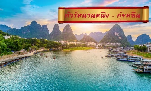 ขึ้นภูเขาชิงซิ่ว ไหว้พระวัดกวนอู ชมถ้ำหินอีหลิ่งเหยน เที่ยวเมืองกุ้ยหลิน ชมเขางวงช้าง เมืองจำลองสมัยซ่ง ช้อปปิ้งตลาดใต้ดินใจกลางเมืองกุ้ยหลิน